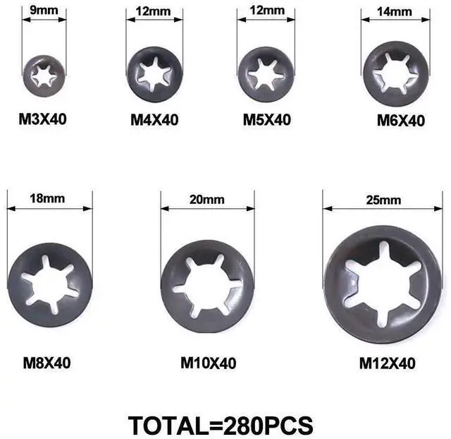 280pcs plum blossom retaining rings, bearing clamps, retaining rings, plum blossom type bearing clamps, retaining rings, 65 manganese steel 3-12, cross-border exclusive supply