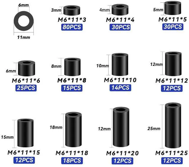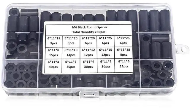 260 pieces of black ABS double-pass isolation straight-through hollow insulating column plastic M6 gasket support cross-border best-selling product
