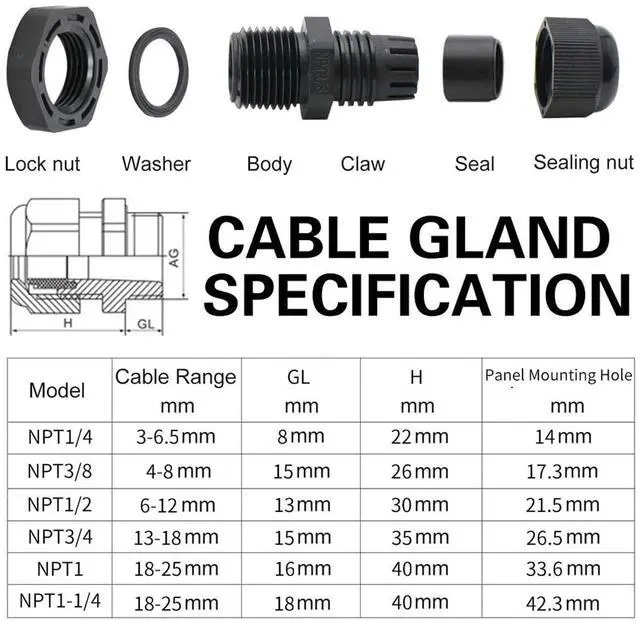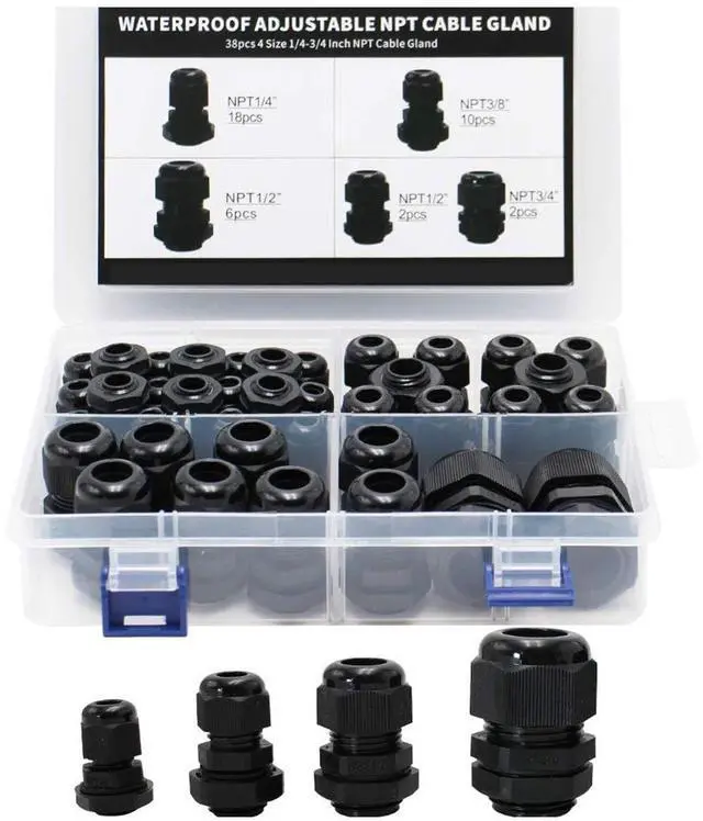 NPT waterproof connector 1/4, 3/8, 1/2, 3/4 inches, 38 pieces, combination, black with gasket, cross-border combination