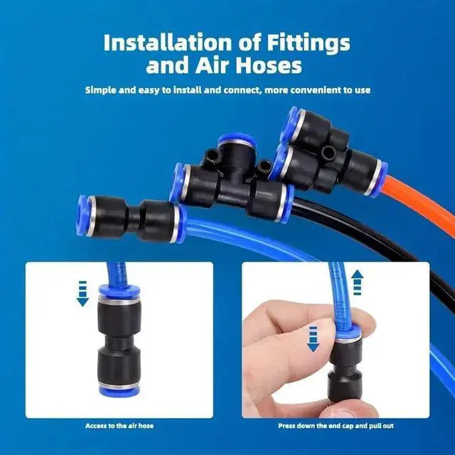 A total of 20 pieces of 10mm quick pneumatic joint accessories, including 5 distributors, 5 elbows, 5 straight heads, and 5 tees, are cross-border combined in a box