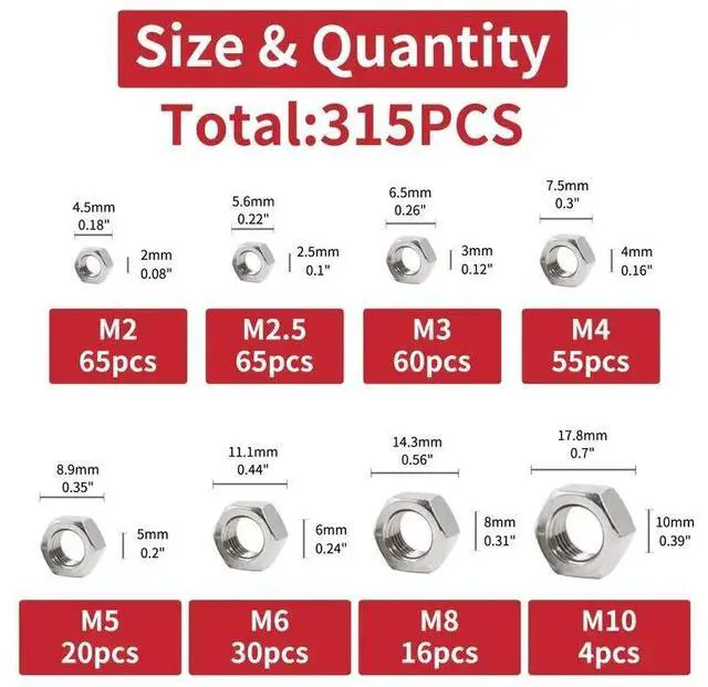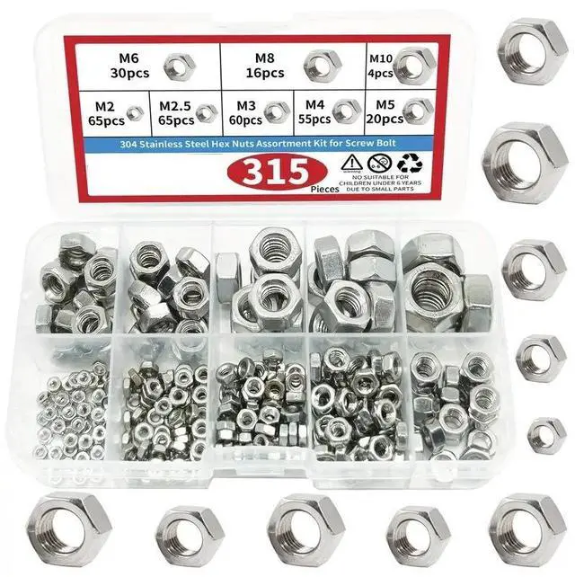 315PCS Stainless steel Hexagonal nut set - Metric size M2-M12, cross-border best-selling set