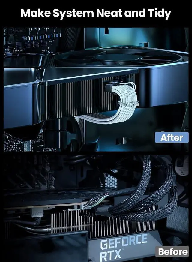Note: This GPU sleeved extender cable is not suitable for 12pin GeForce RTX 3090 Series GPU. Only support 12+4pin female GPU like RTX 3090Ti 4070Ti and RTX 4080 4090 Series.
