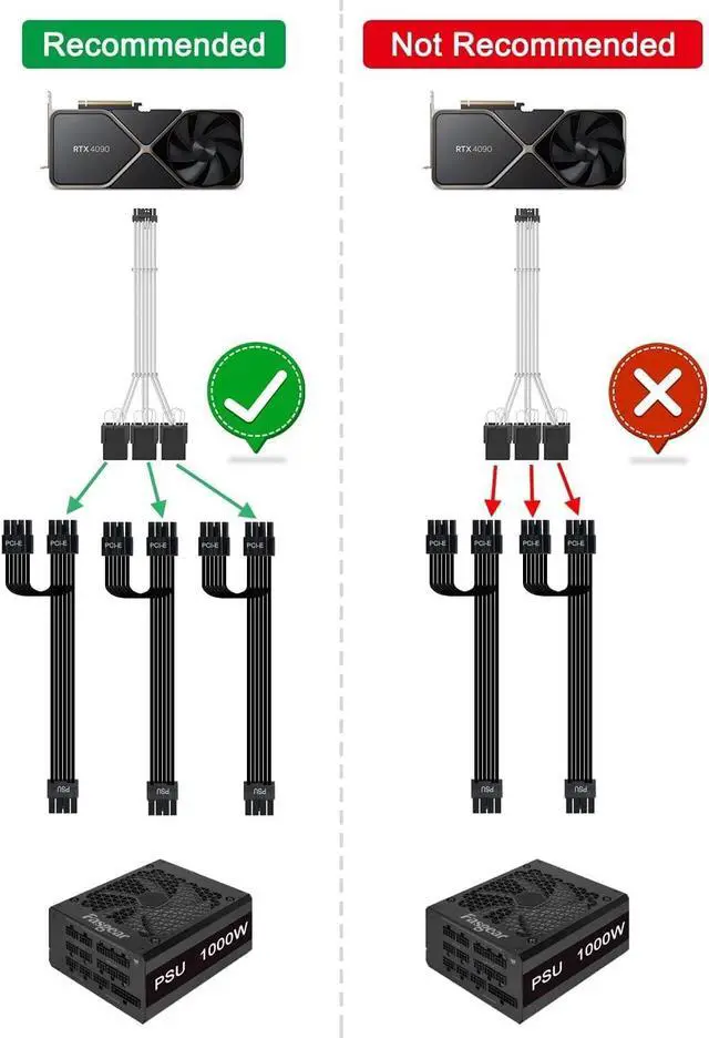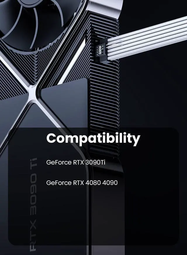 Designed for RTX 3090Ti 4070Ti and 4080 4090Fasgear PCIe 5.0 12+4pin male to 8pin(6+2) female sleeved extension cable is designed for GeForce RTX 3090Ti 4070Ti and RTX 4080 4090 Series GPU. That means, this PSU cable can extend the length and work well with the original power cable to get a stable and reliable performance.
