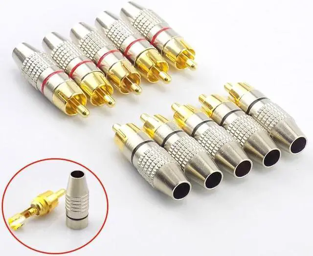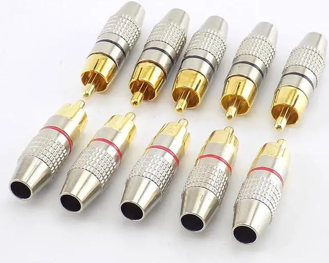 5pcs 10pcs RCA Male Plug to cabling Connector Adapter Audio Video Cable Non Solder Gold Plated CCTV Camera Security Accessories