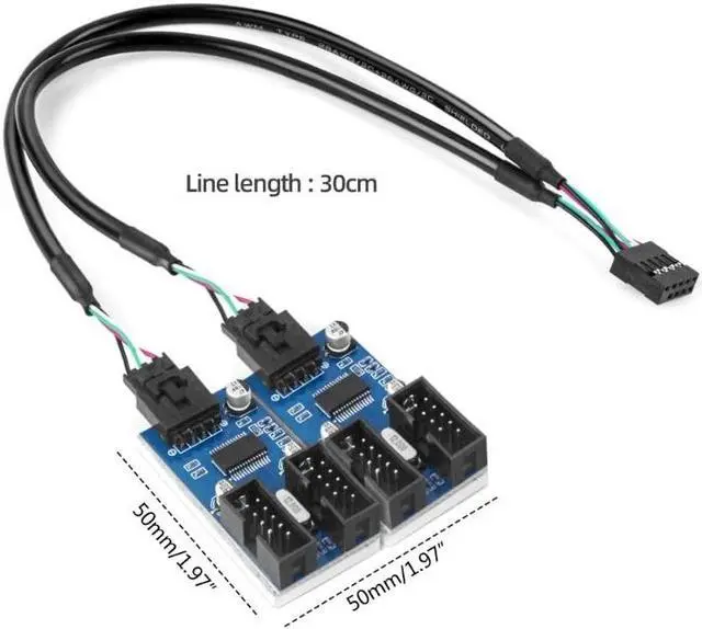 USB hub for motherboard, as it can convert motherboard 1 USB 2.0 male to 4 female. With a 30cm USB head cable, it easy to place board at a convenient location.