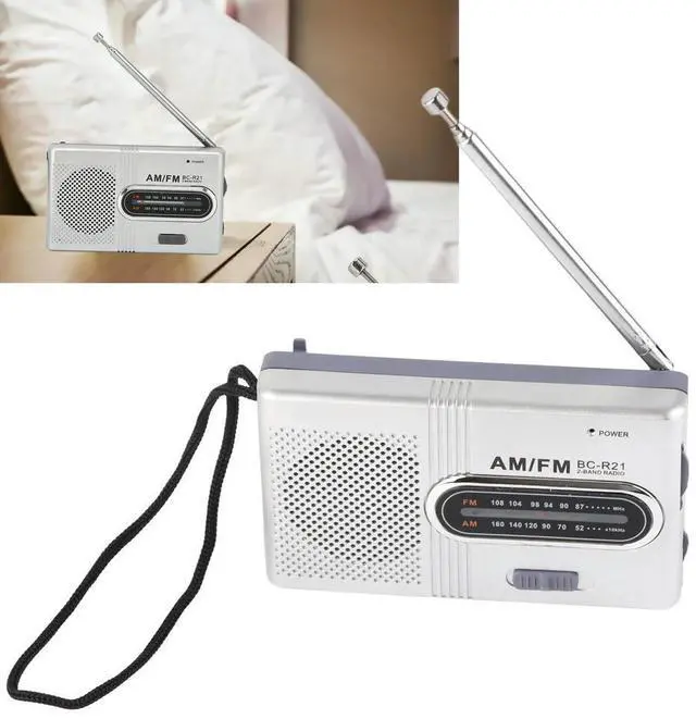 AM FM Radio Long 5W Speaker Lasting Portable Pocket Transistor Radio with Earphone Jack for Home Outdoor Silver Gray hot