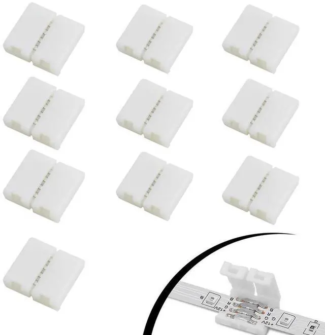 Led Light Connector Easy and Flexible LED Strip Connections 10PCS Solderless Connector for 10mm 4 Pin RGB Strip