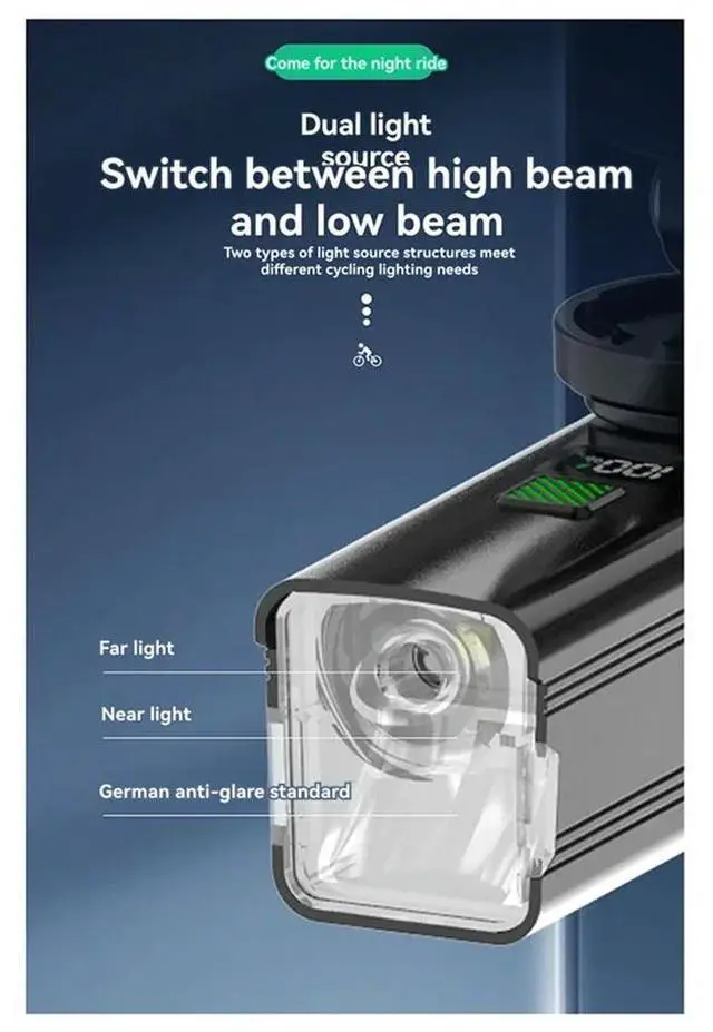 Cycling Lights Bicycle Headlights With High And Low Switch 800 Lumens USB-C Charging For Cyclists And Commuters