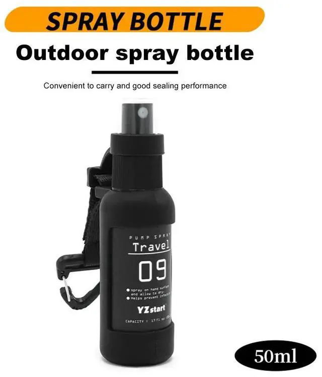 50ml Liquid Containers Leak Proof Refille Spray Bottle Mini Fine Mist Spray Bottles with Tactical Hook Strap Portable Sprayer