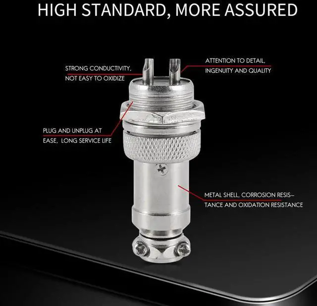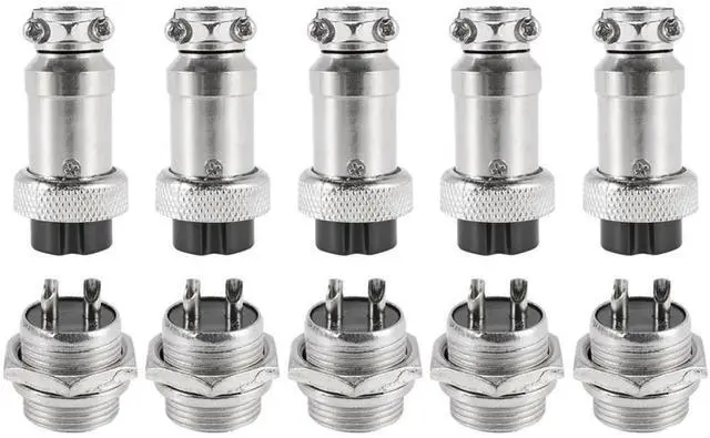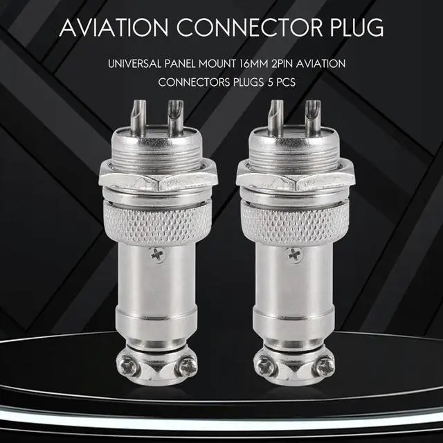 Universal Panel Mount 16mm 2Pin Aviation Connectors Plugs 5 Pcs