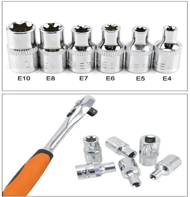 ly 6pcs 1/4 Inch Torx Star Female Bit E Socket Set E4/E5/E6/E7/E8/E10 Hand Tools Heat Treatment Ratchet Wrench Socket
