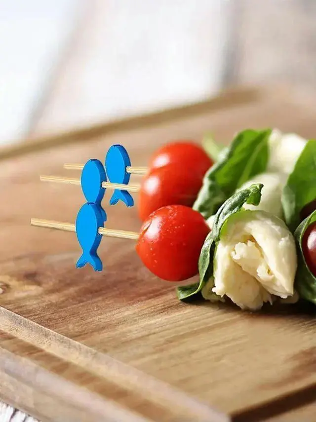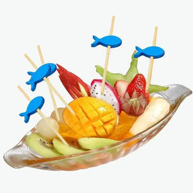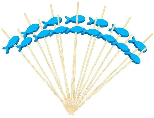 100 Pcs Disposable Bamboo Food Cocktail Picks Blue Fish Buffet Fruit Cupcake Fork Sticks Party Table Decoration Supplies