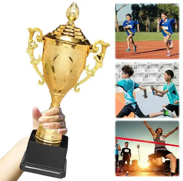 Gold Plastic Trophy Gold Trophy Cup with Lid Basketball Football Trophy Sports Competition Trophy for Championships Tournaments
