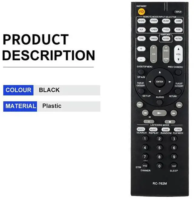 2X Remote Control Replacement RC-762M For Onkyo AV Receiver HT-R380 HT-R290 HT-R390 HT-R538 TX-SR308 HT-S3400 HT-RC230
