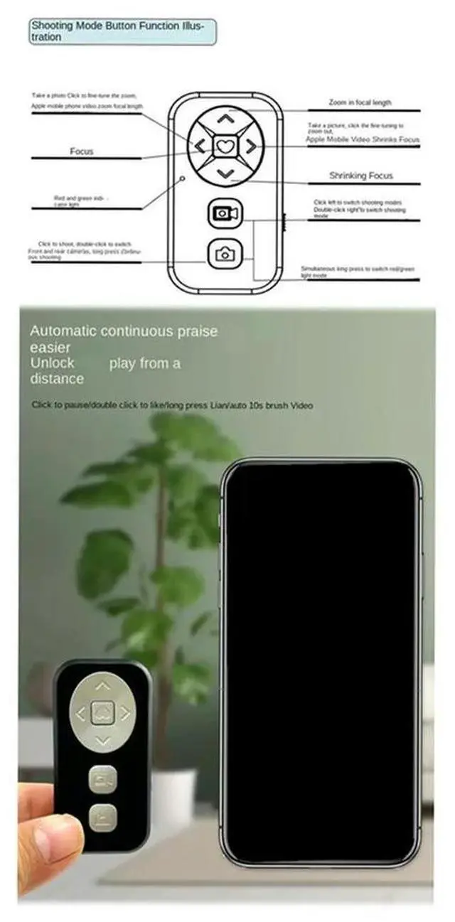 For Tiktok Mobile Self Timer Zoom Function Bluetooth Remote Controller, Page Turning, Liking, Self Timer Short Video