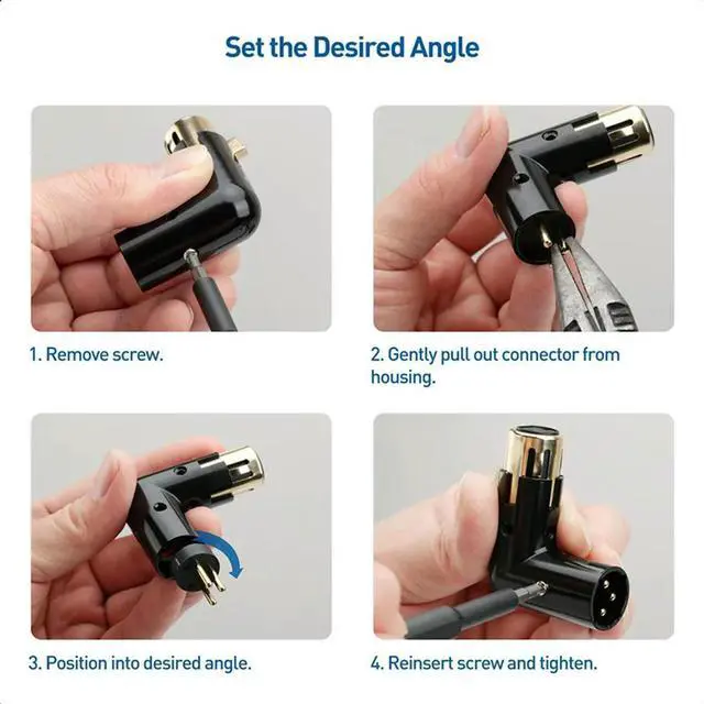 2Pcs 3Pin XLR Angle Adapter Adjustable Male To Female Right Angle XLR Adapter XLR 90 Degree Adapter