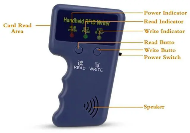 125Khz EM Handheld RFID Copier Card Reader Writer Duplicator Programmer Support EM4305/ T5577 Rewritable Keyfobs Token Tags