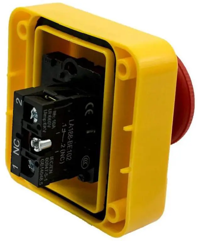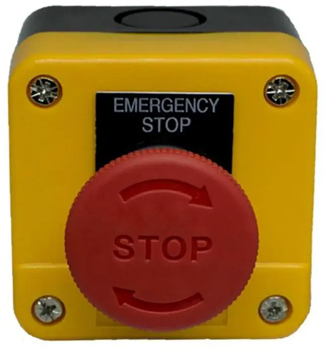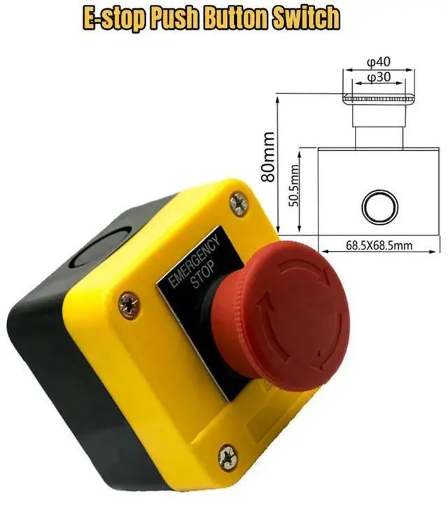22mm Latching Emergency Stop Push Button Switch with Red Mushroom Head 1NC Contact Waterproof ABS Box for CNC Machines