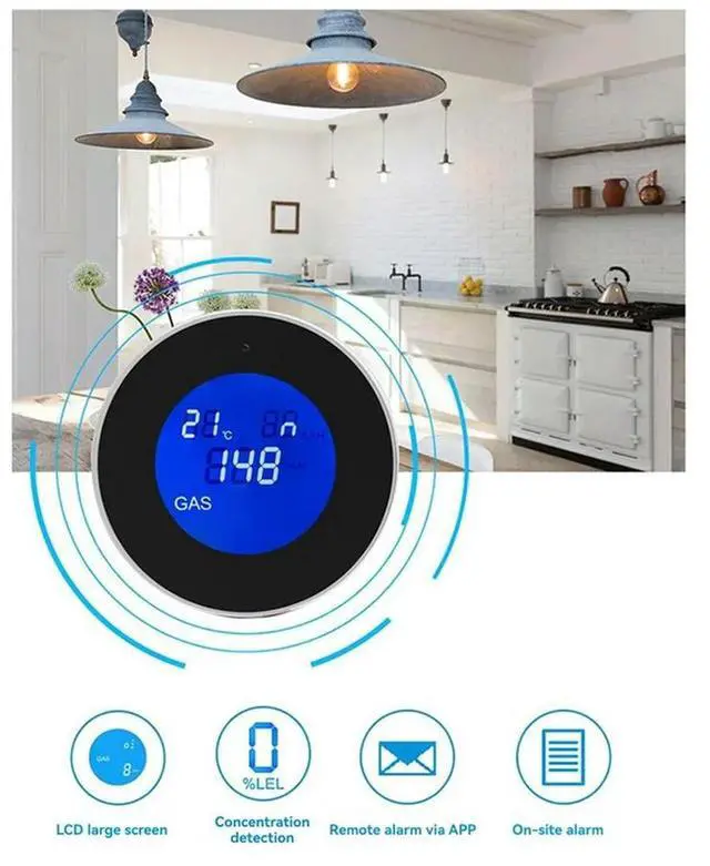 Combustible Gas Detector Combustible Gas Leak Detector With Temperature Function With LCD Display With Tuya App EU Plug