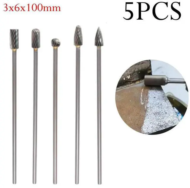 5pcs 3x6x100mm Long Single Cut Solid Carbide Rotary Burrs Set Rotary Tools For Power Tools Accessory In Stock