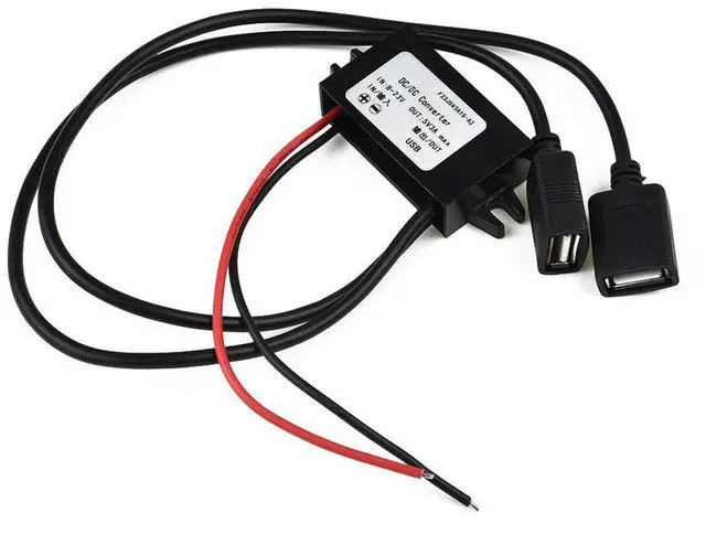 12V to 5V USB Power Converter DC Voltage Step Down Adapter with Dual 3A Output Ports for Car Motorcycle Boat Applications