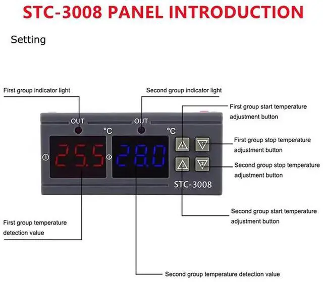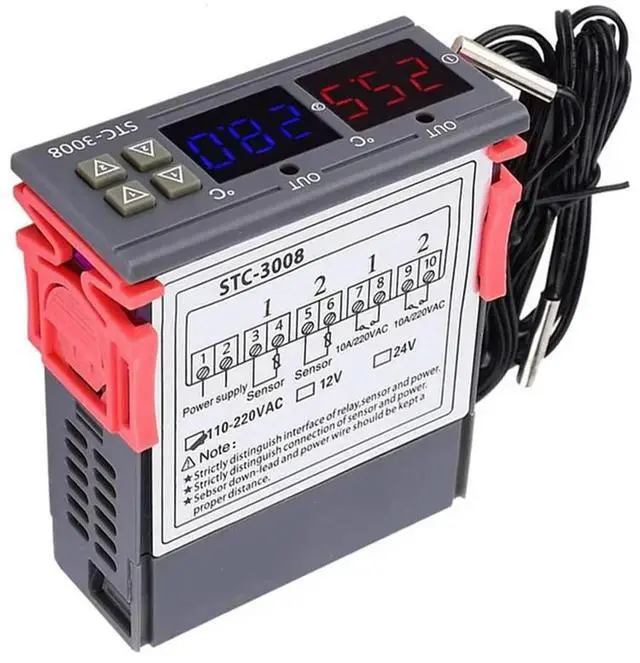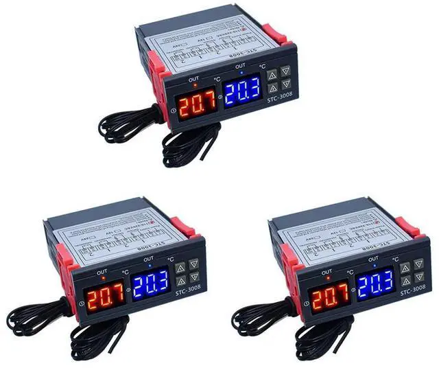 3X Dual Digital STC-3008 Temperature Controller Two Relay Output Thermostat Heater With Probe Temperature Controller, B