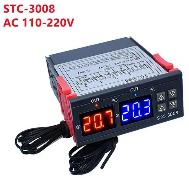 3X Dual Digital STC-3008 Temperature Controller Two Relay Output Thermostat Heater With Probe Temperature Controller,B
