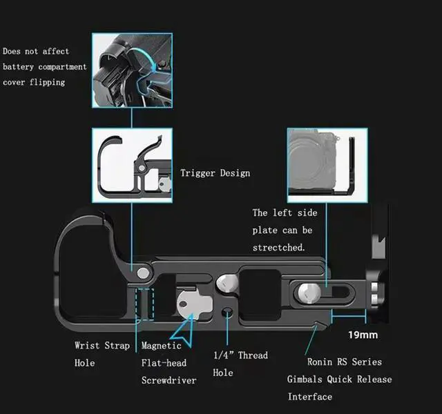 Dual Arca Style Plate Fixing Column Extendable L-Bracket With Compartment And Trigger For Z8 Camera