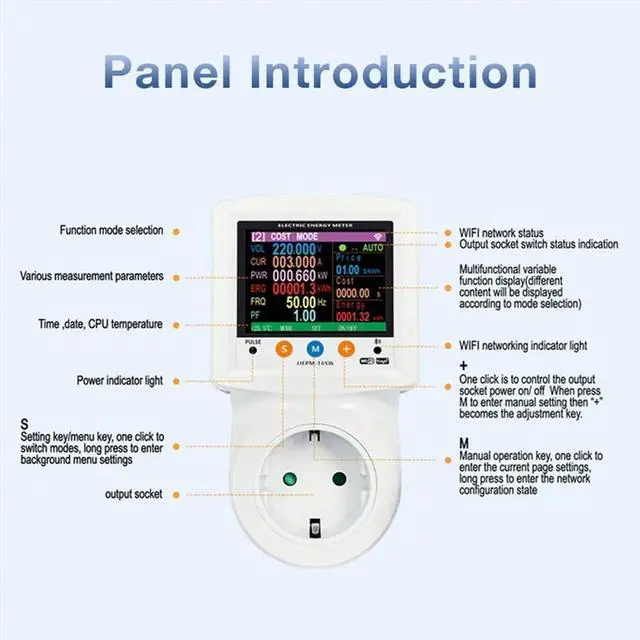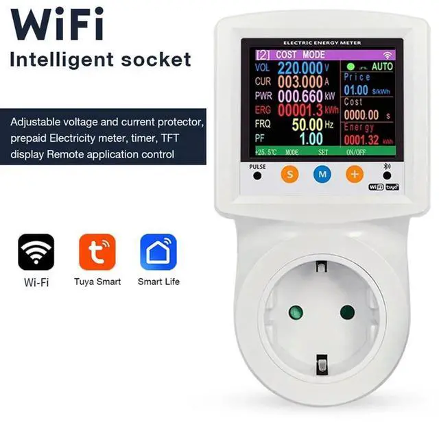 Tuya Wattmete Digital Power Meter Electricity Energy Meter Voltage Current Protection Timer Switch EU Plug