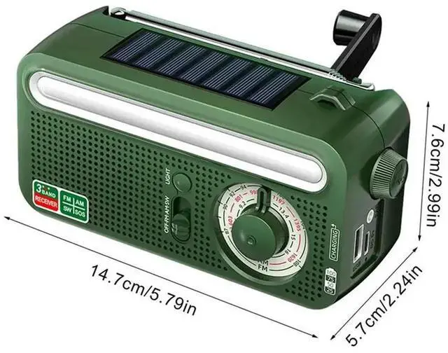 Outdoor Emergency Weather Radio Solar Hand Crank Flashlight Torch AM/FM/NOAA Power Bank Solar Panel Survival Tool