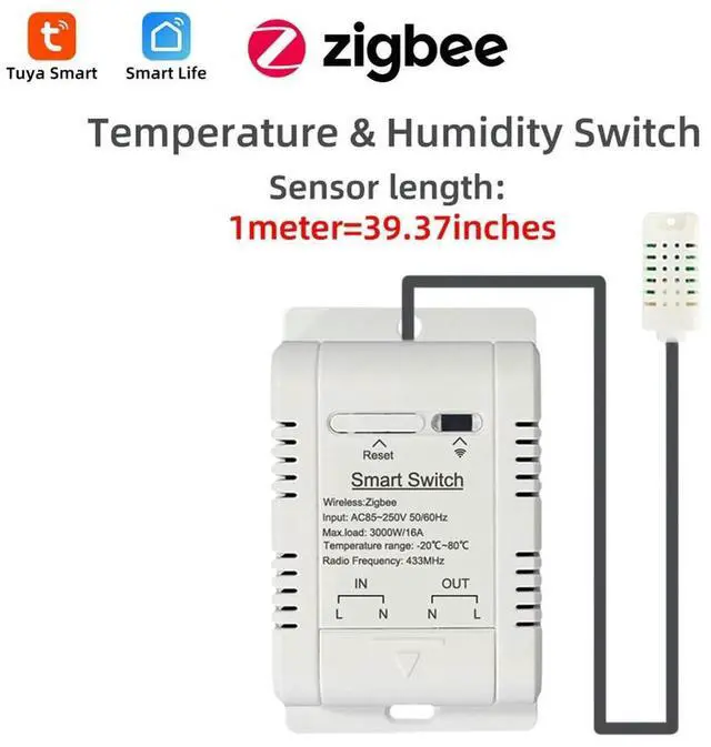 Tuya Zigbee Temperature And Humidity Switch 16A Wireless Thermostat With 1M Sensor Supports Voice Control