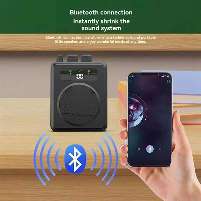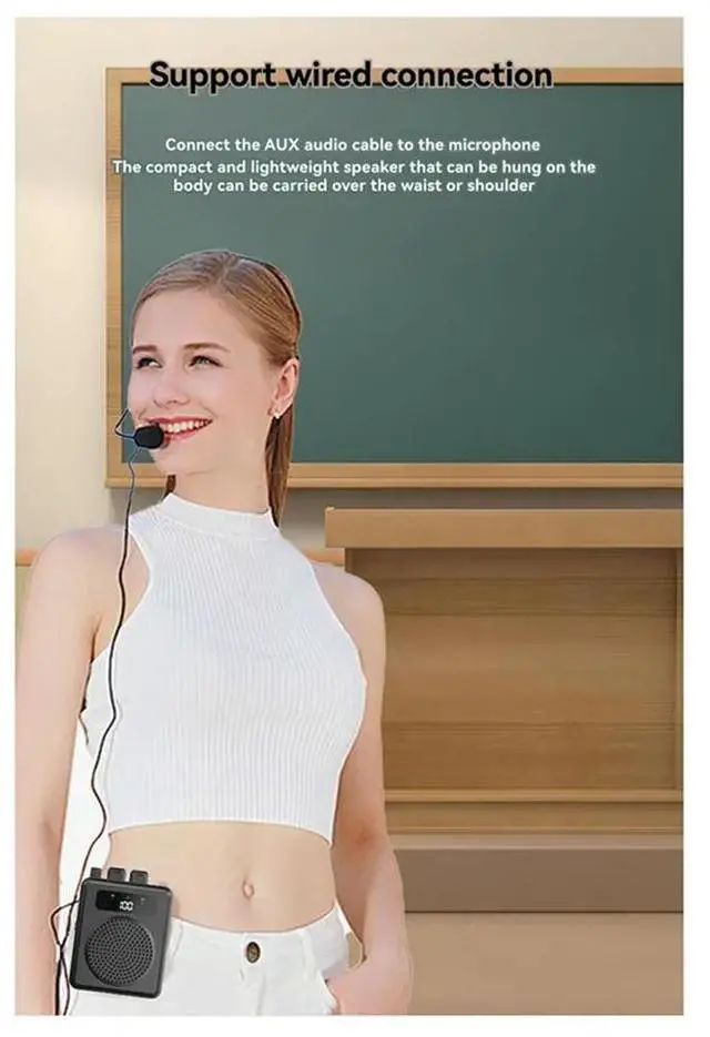 Lavalier Microphone Wireless Megaphone Speaker Mini Portable Voice Amplifier For Teachers Tour Guides Coaches White