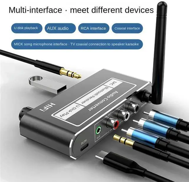 2X Wireless HIFI DAC Converter Bluetooth 5.2 Receiver Audio Coaxial To R/L 3.5M m Aux Adapter With U Disk Play Mic