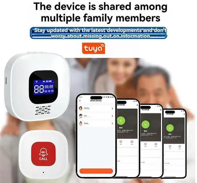 Tuya Emergency SOS Alert System Elderly Caregiver Pager Call Button For Seniors, Patients, And Elderly At Home