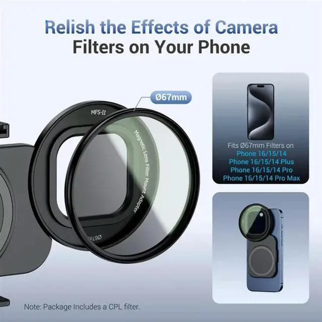 67Mm Magnetic Lens Filter Adapter Kit Withcpl Filter&Pouch For16 Pro Max Plus Enhance Your Mobile Photography