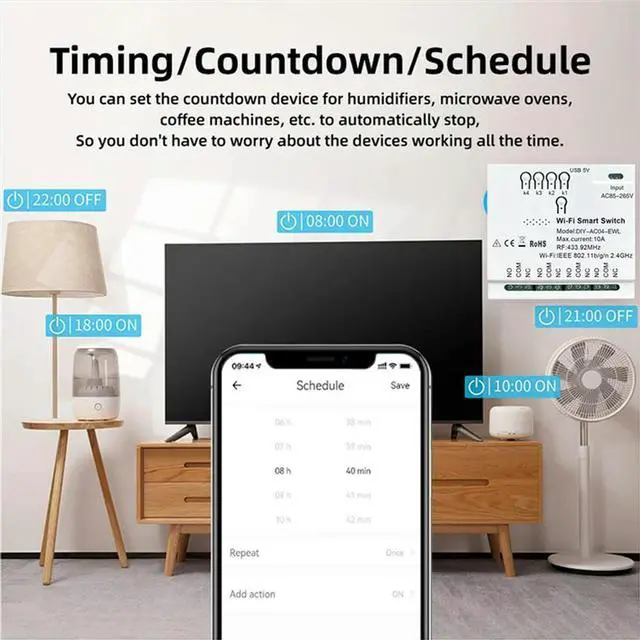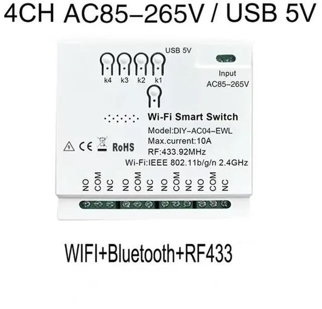 3X 4CH Ewelink Switch RF433 85-265V 2.4G life Home Automation Module For IFTT Alexa Google Home