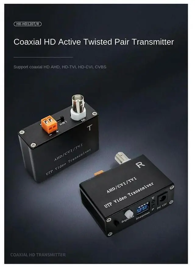 2X 1 Channel Active Video Balun For CCTV Camera Twisted Pair Transmitter Bnclong Range For AHD TVI CVI 5/10MP