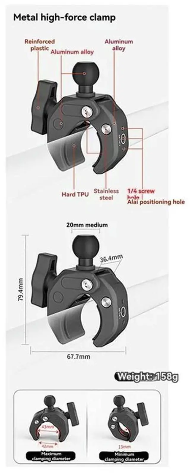 Mount Clamp Stand Anchor l Aluminum Black For Action Cameras X5 Ace Pro 2 Gopro 13 Motorcycle Accessories
