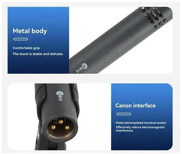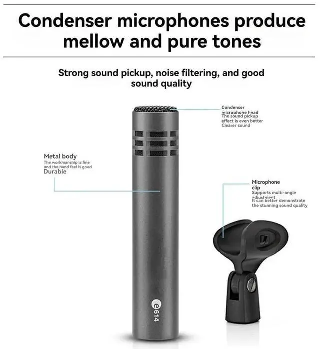 E614 Condenser Instrument Microphone Drum Shaped Design Megaphone With Clamp Mount For Stage Performance