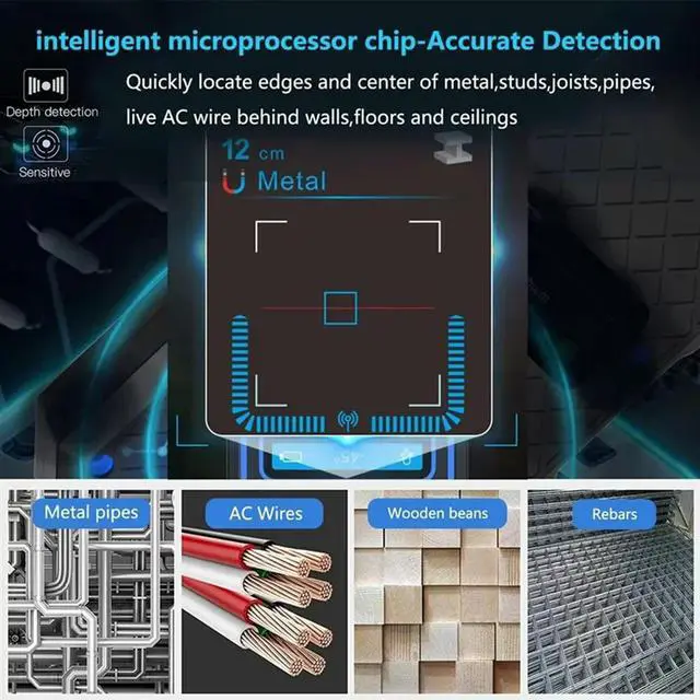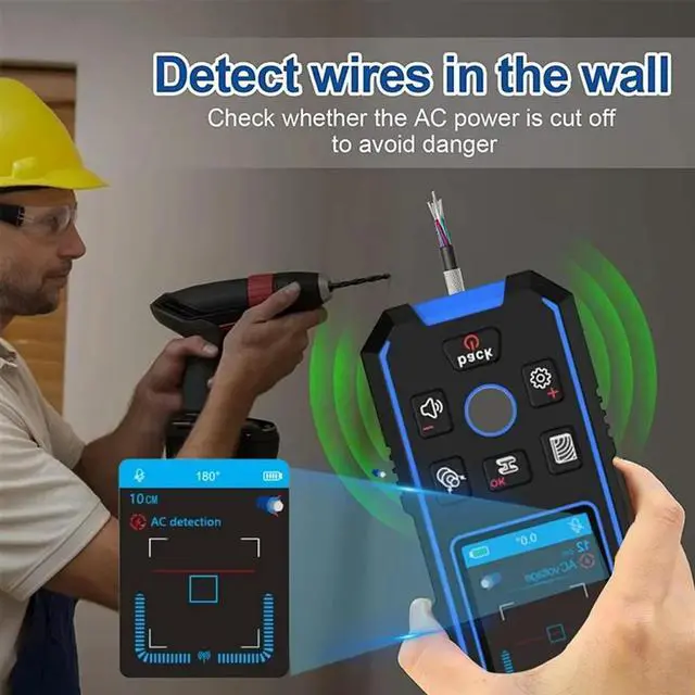 NF-518 Wall l Detector LCD Display With Positioning Hole For AC Live Cable Wires l Wood Stud Find