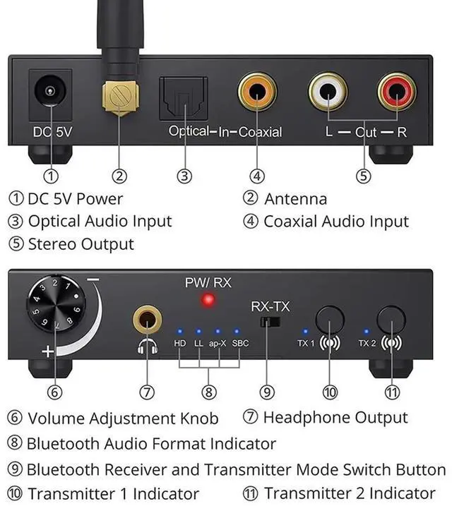 DAC Converter Digital To SPDIF Analog Audio Bluetooth 5.0 With RCA 3.5M m Outputs Volume Control For PS4 TV Amplifier