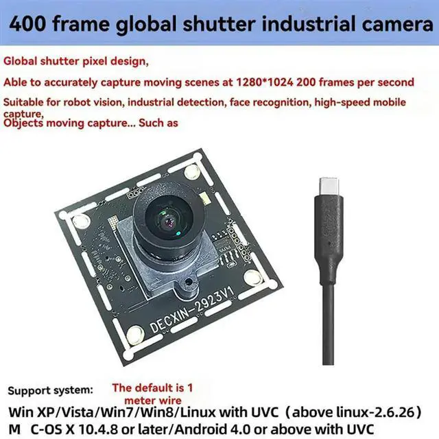 USB3.0 Global Shutter Camera 1.3MP 93° Industrial Camera Module 400 Frames Driver-Free For WINXP/7 8 10 LINUX Android