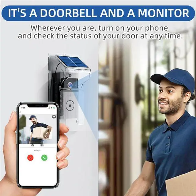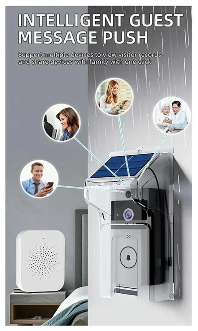 2X visual Doorbell Camera Wireless Solar Charging Waterproof Night Vision HD Doorbell Two-Way Intercom Voice