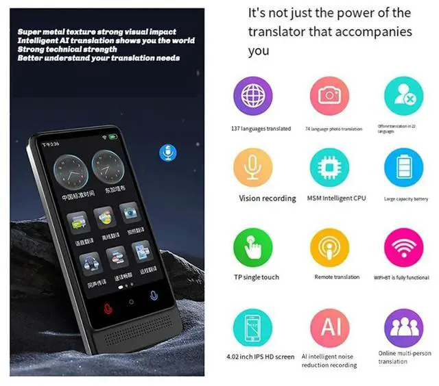 Portable M12 Translator 137 Languages Real-Time Voice & Photo Translation