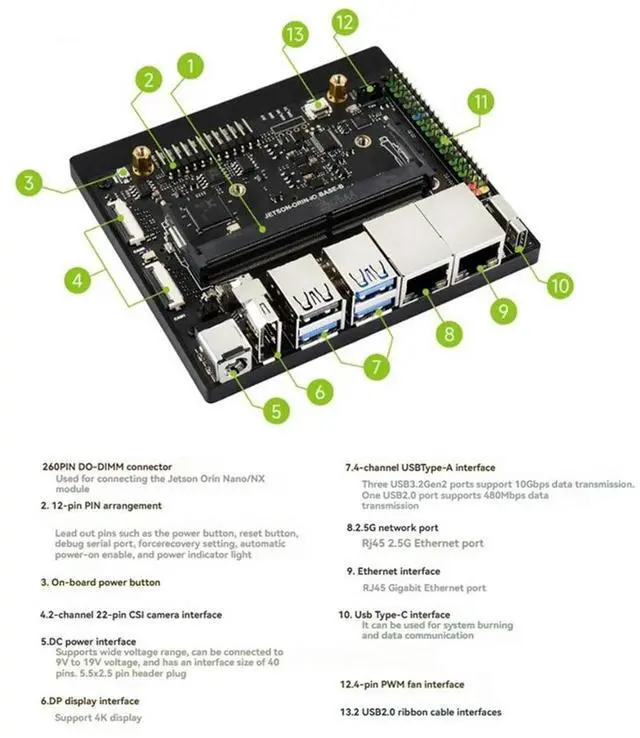 Dual Ethernet Port Base Board Base Board For Jetson Orin Nano NX Core Board Expand 1 Port M. 2 Key E 4K HD Output