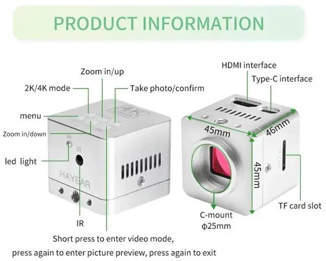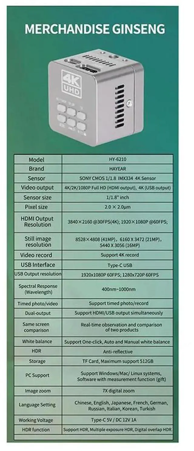 HY-6210S Remote Control 41MP USB Digital Microscope Eye Piece Camera 4K UHD Industrial Electronic Eyepiece