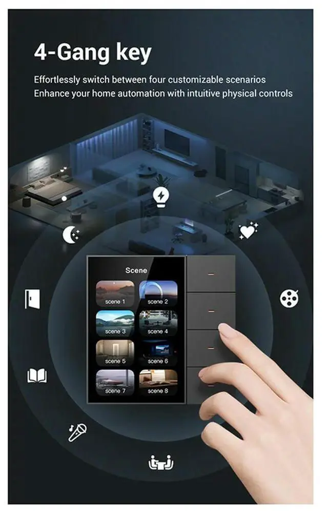 3 Set 3.5 Inch Wall Switch Touch Screen 4 Groups Switch 8-Way Scene Radar Sensor Dimming Switch Tuya Zigbee A