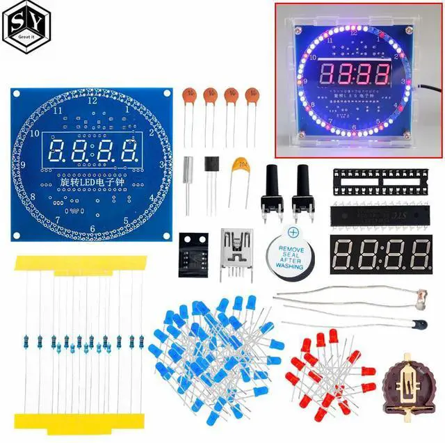DS1302 Rotating LED Display Alarm Electronic Clock Module DIY KIT LED Temperature Display