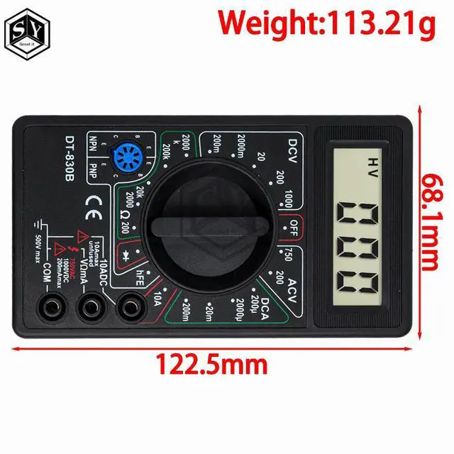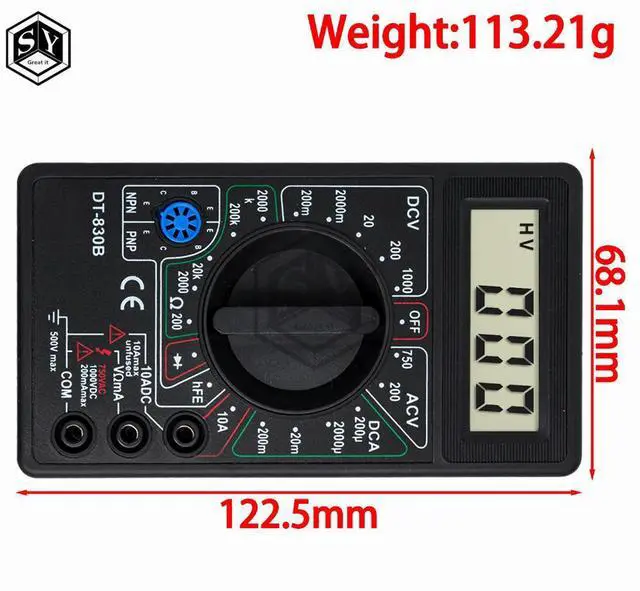 DT-830B Manual Ranging Multimeter (EGBO) - 1000V AC/750V DC Volt/Ohm/Amp Meter for DIY Hobbyists