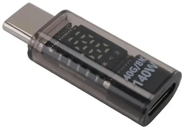 USB C Adapter LED Wattage Display 140W 40Gbps 8K USB C Extension PD3.1 Type C Connector Type C Power Meter Tester
